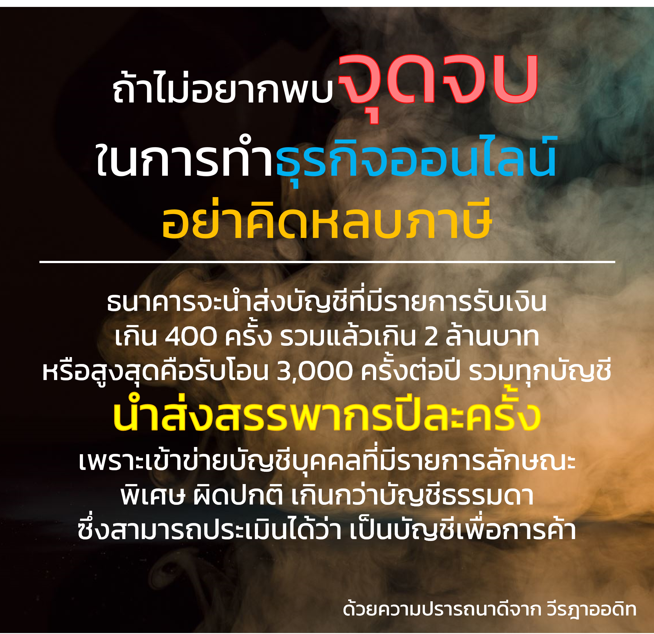 สุดท้ายนี้สำหรับใครที่ไม่ได้จดทะเบียนนิติบุคคล แต่มีรายได้เข้าบัญชีธนาคารเยอะมาก ๆ อาจจะถูกสงสัยว่าทำธุรกิจออนไลน์